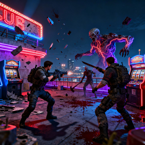 ZOMBIE VEGAS переносит игроков в альтернативный Лас-Вегас после вирусной катастрофы. Город, некогда сиявший миллионами огней, теперь тонет в дыму, вспышках неона и хрипах оживших мертвецов. Главная цель — выбраться из заражённого небоскрёба, пробившись через четыре смертоносных этажа. Каждый уровень — отдельная локация с уникальными противниками, атмосферой и задачами, требующими командной координации.