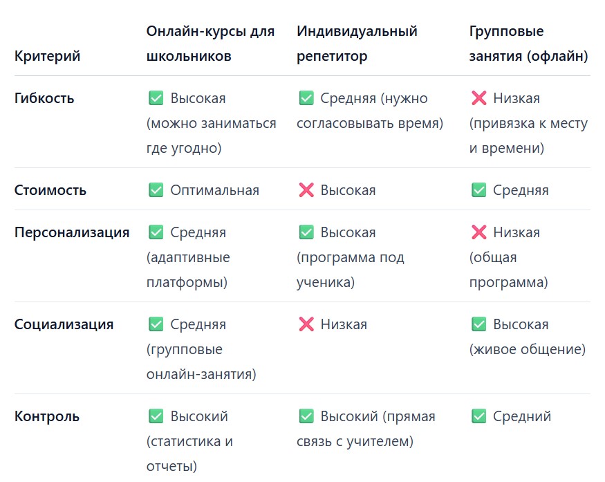 Онлайн-курсы для школьников — это золотая середина. Они предлагают гибкость, доступ к современным интерактивным материалам и возможность заниматься как индивидуально, так и в небольших группах.